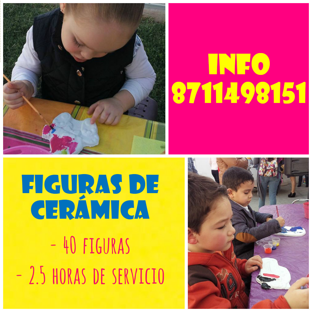 tags: renta de caballetes infantiles en torreonPintura en cerámica es una manera entretenida y económica de divertir a tus invitados... los peques pintaran lindas figuras de yeso en forma de sus personajes favoritos y podrán llevárselas a su casa!! info. 87 11 49 81 51