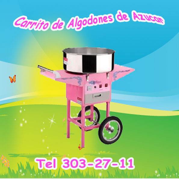 Algodones de azucar hechos en tu evento con nuestro carrito de algodones tipo kermes, con un costo de $10 cada uno, minimo 50.
